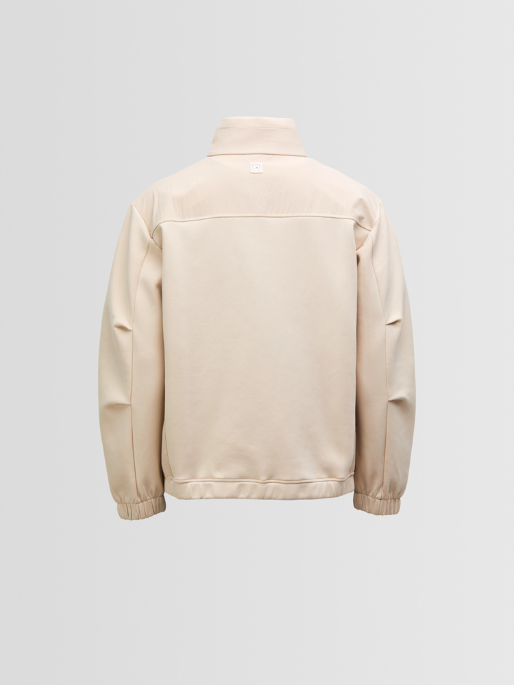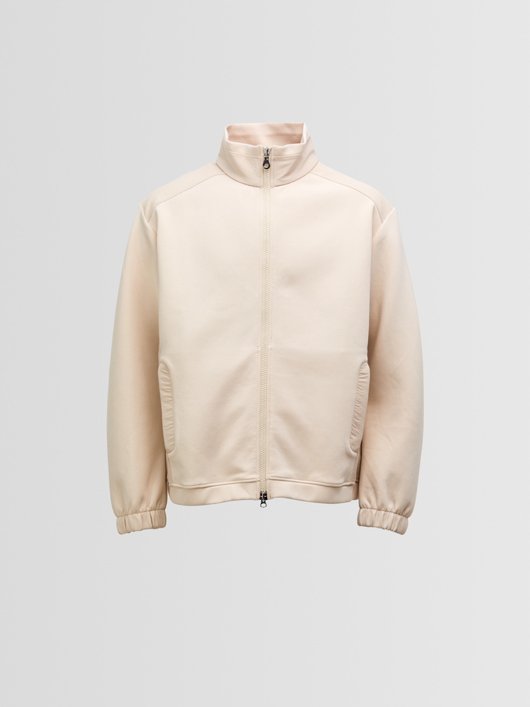 Crafted from a double-knit scuba jersey, this jacket combines two layers of fine fabric to create a spongy, structured feel with a smooth and refined surface. Designed for modern versatility, it offers a clean silhouette and elevated comfort.
