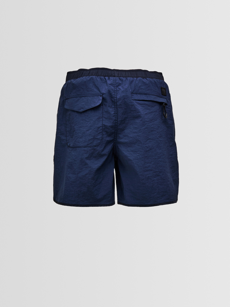 Crafted from crisp crepe nylon, these shorts combine a clean, technical look with thoughtful detailing. Contrast piping and discreet storage solutions add a refined edge to a functional summer style.