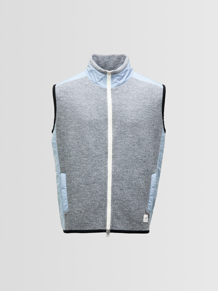 Crafted from 100% merino wool, this boiled wool vest combines natural warmth and softness with a refined, structured finish. Durable ripstop nylon details add a subtle technical contrast, elevating the piece with modern utility.
