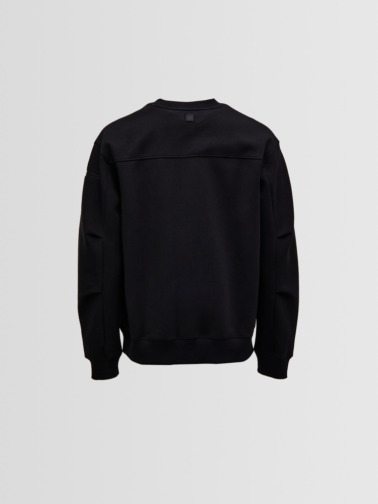 Crafted from double-knit scuba jersey, this crewneck sweatshirt combines two layers of fine fabric for a spongy, structured hand feel and a smooth, refined surface. Its versatile design balances casual ease with elevated comfort.